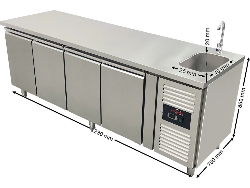 Stół zamrażalniczy ze zlewem i 4 drzwiami