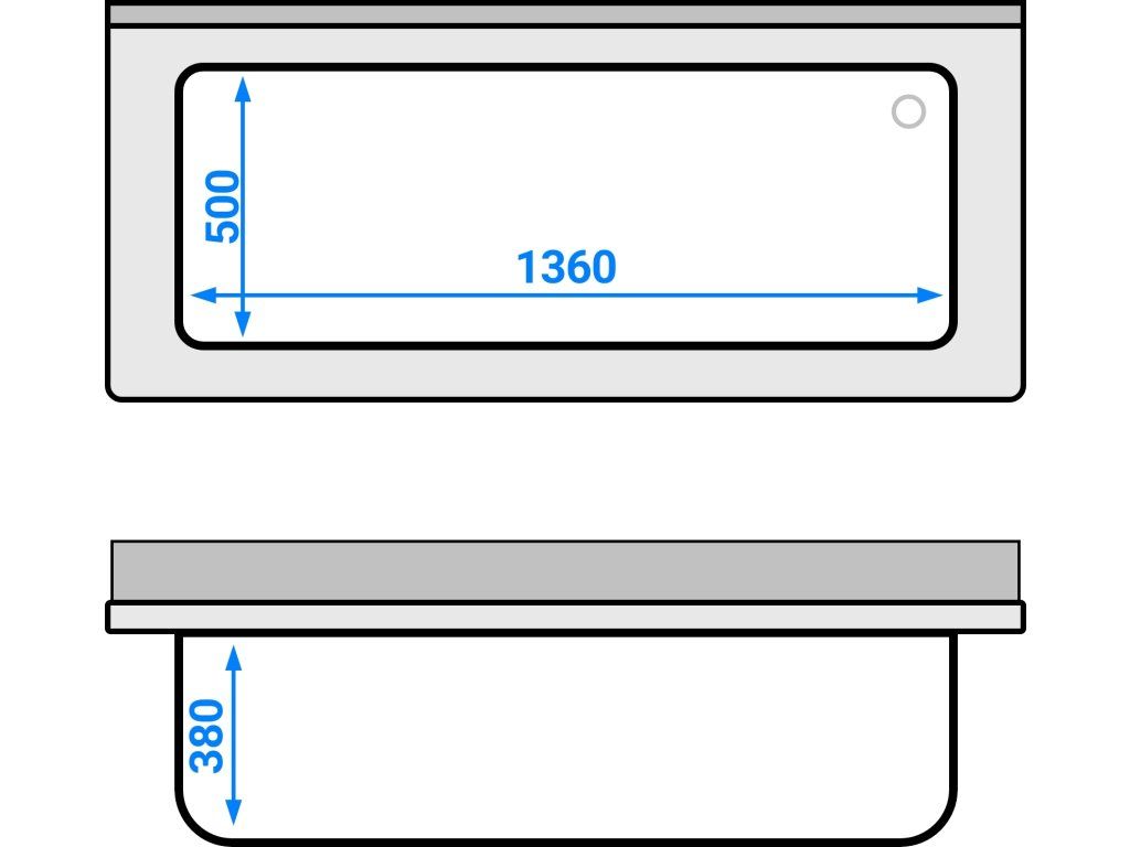 - Wymiary umywalki szer. x głęb. x wys.: 1.360 mm x 500 mm x 350 mm