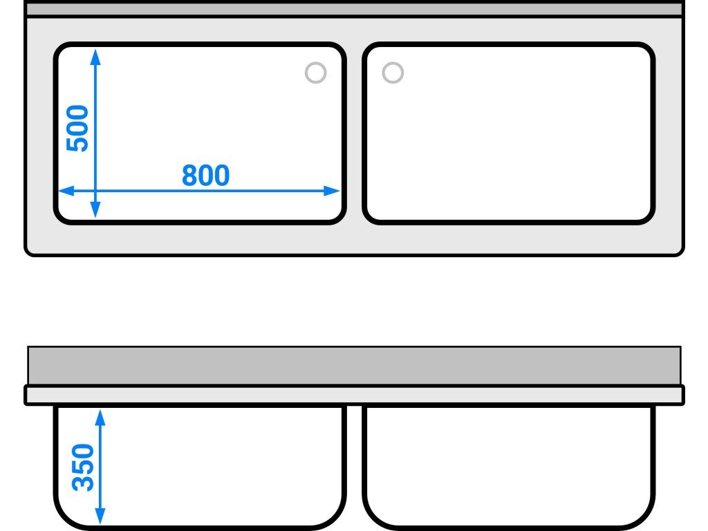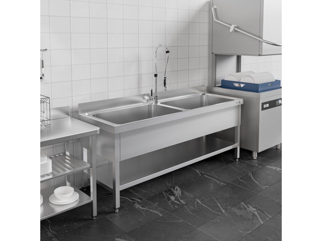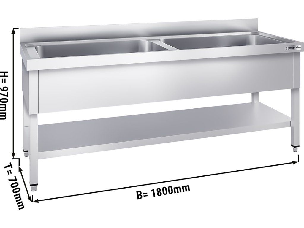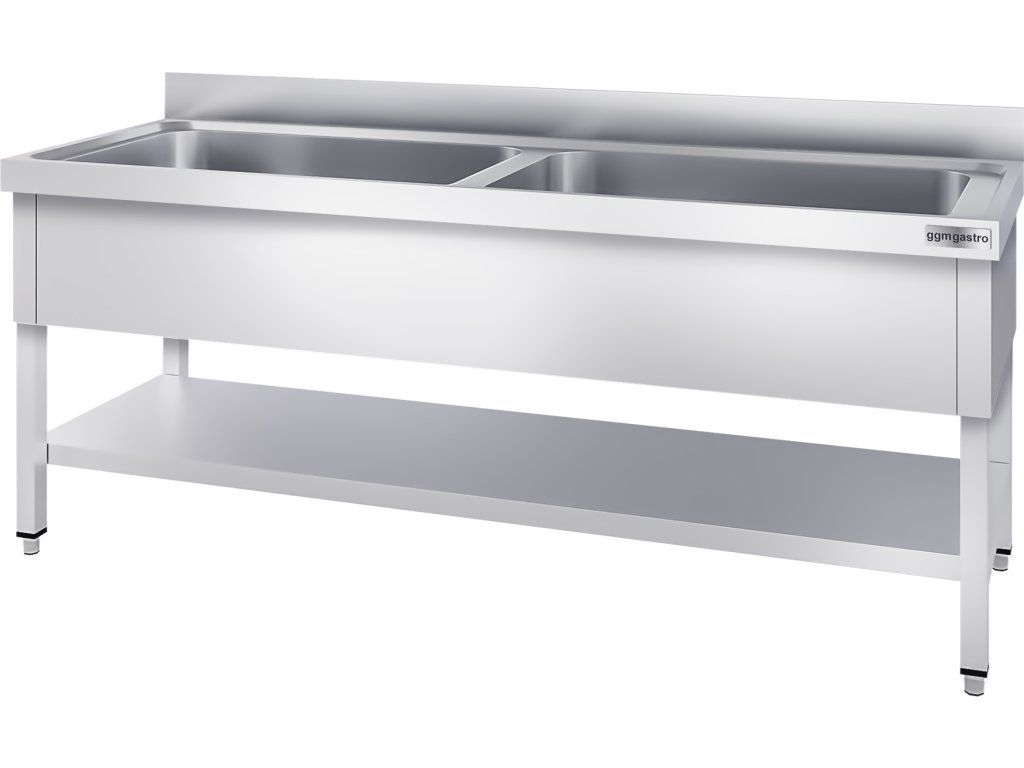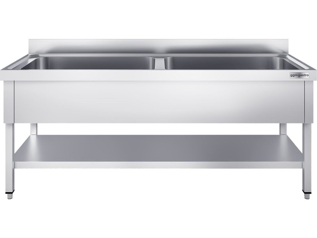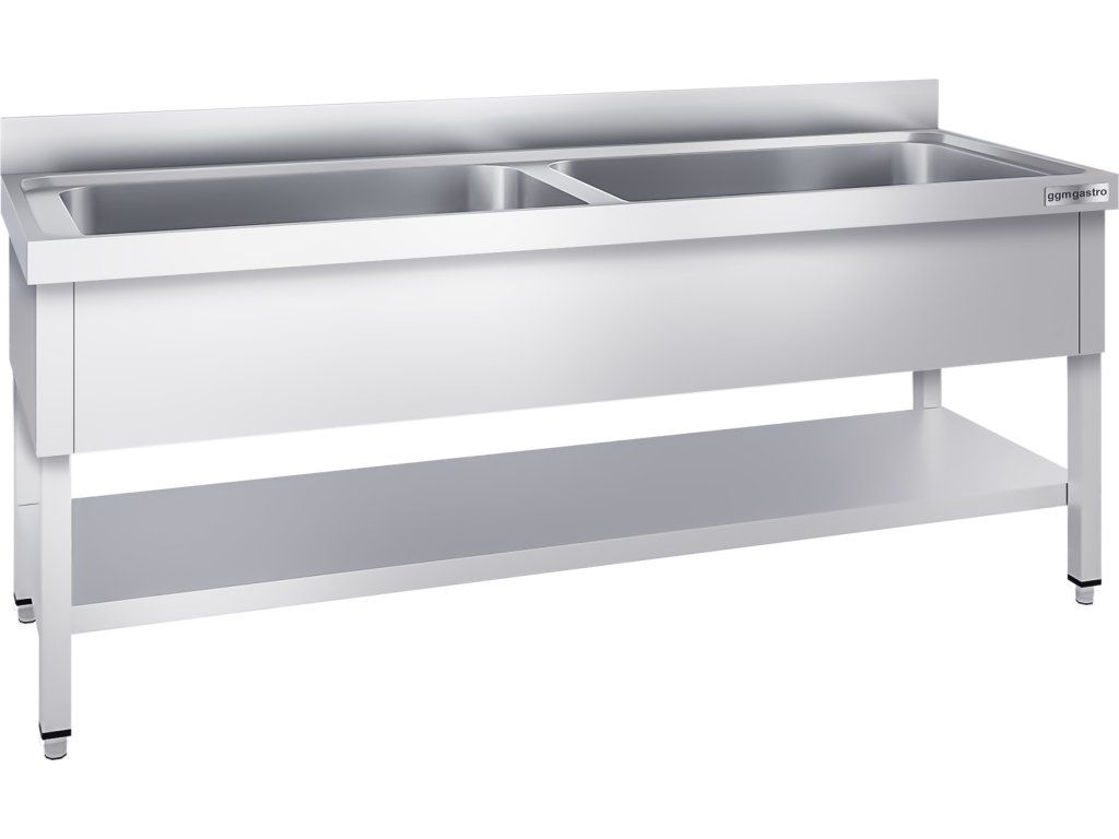 Stół zlewozmywakowy do mycia garnków - 1800x700mm - z dolną półką i 2 zlewami