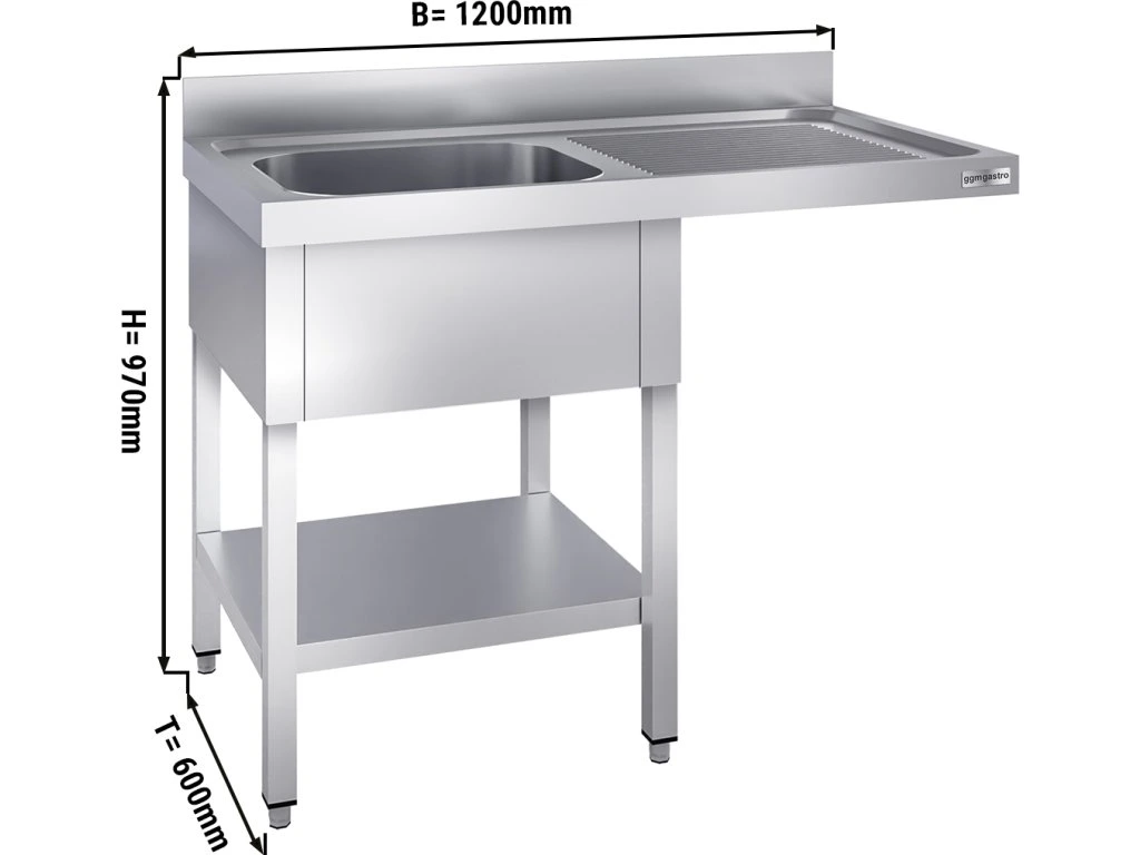 Stół zlewozmywakowy do zmywarki - 1200x600 mm - z 1 zlewem po lewej stronie