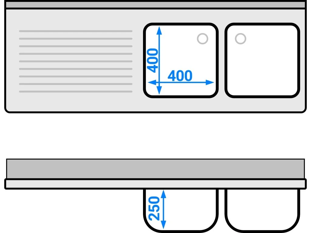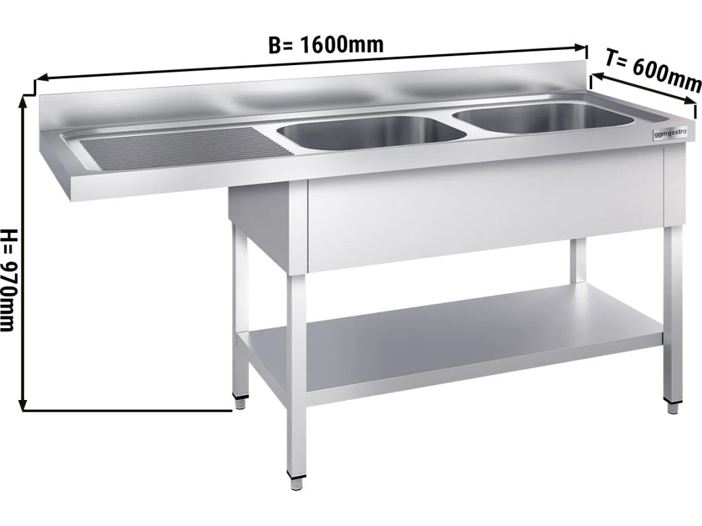 Stół zlewozmywakowy do zmywarki - 1600x600mm - z 2 zlewami po prawej stronie