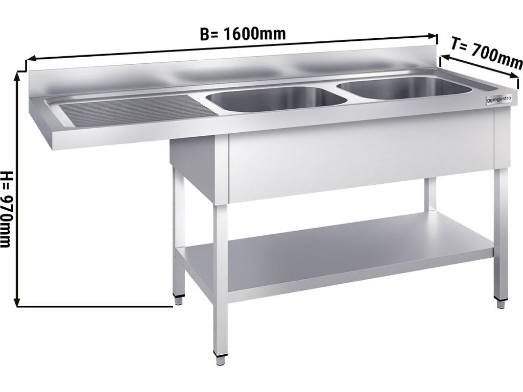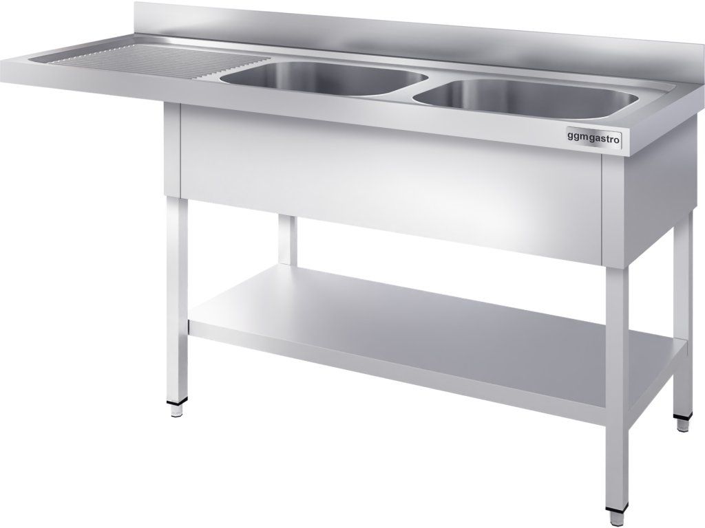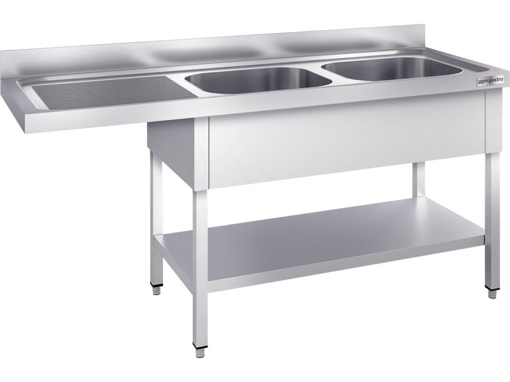Stół zlewozmywakowy do zmywarki - 1600x700mm - z 2 zlewami po prawej stronie
