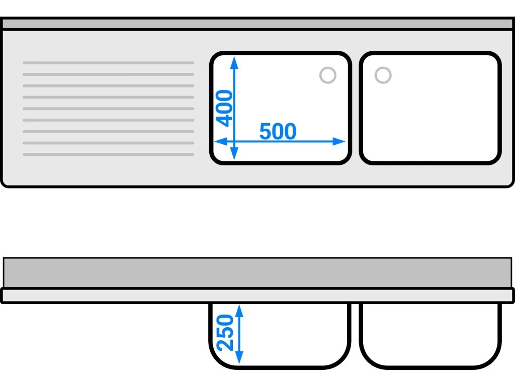 Stół zlewozmywakowy do zmywarki - 1800x600mm - z 2 zlewami po prawej stronie