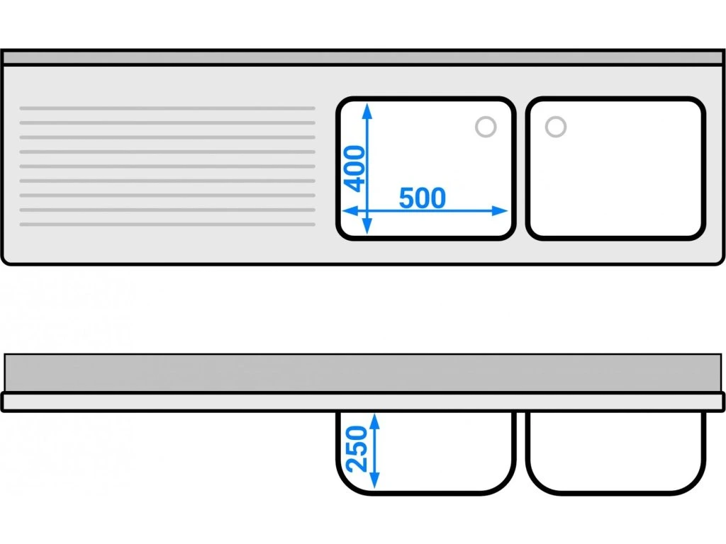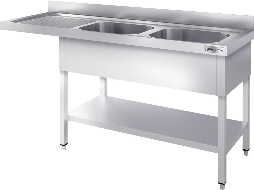 Stół zlewozmywakowy do zmywarki - 2000x600mm - z 2 zlewami po prawej stronie