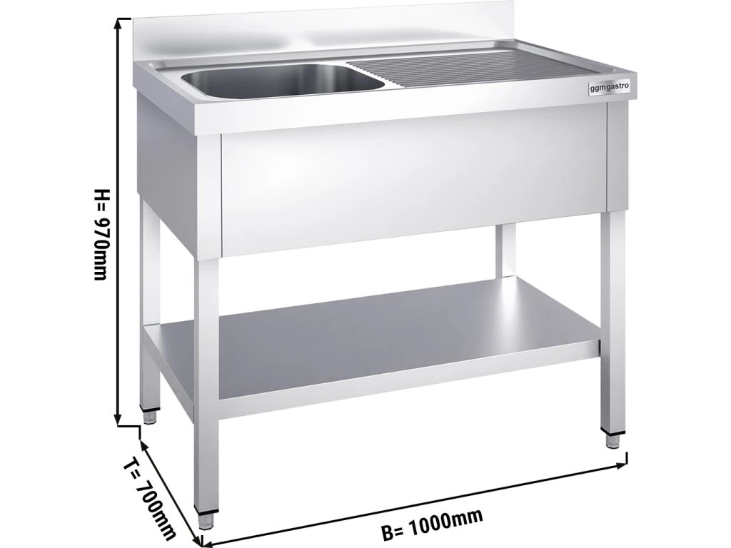 Stół zlewozmywakowy PREMIUM - 1000x700 mm - z półką dolną i 1 zlewem po lewej stronie