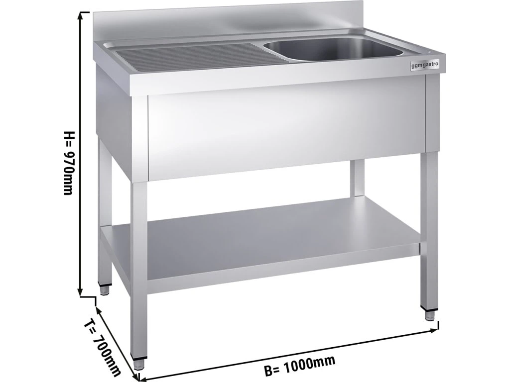 Stół zlewozmywakowy PREMIUM - 1000x700 mm - z półką dolną i 1 zlewem po prawej stronie