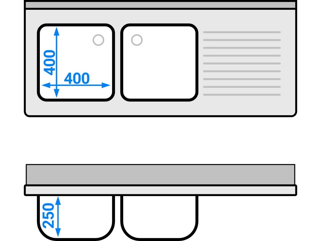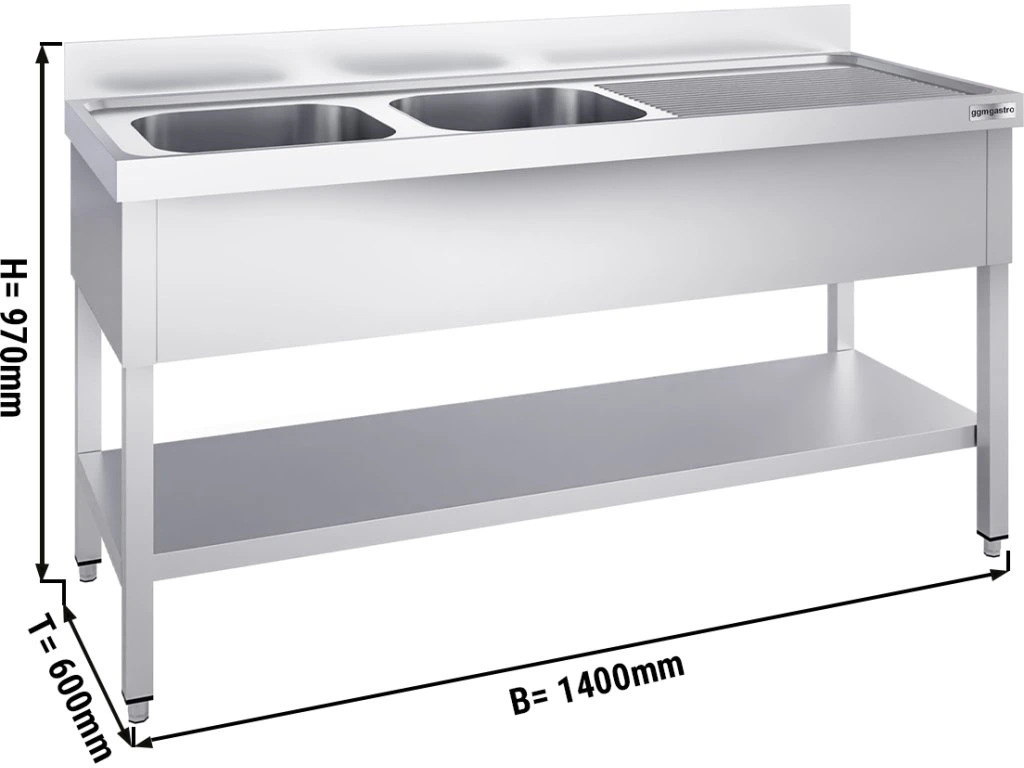 Stół zlewozmywakowy PREMIUM - 1400x600 mm - z półką dolną i 2 zlewami po lewej stronie