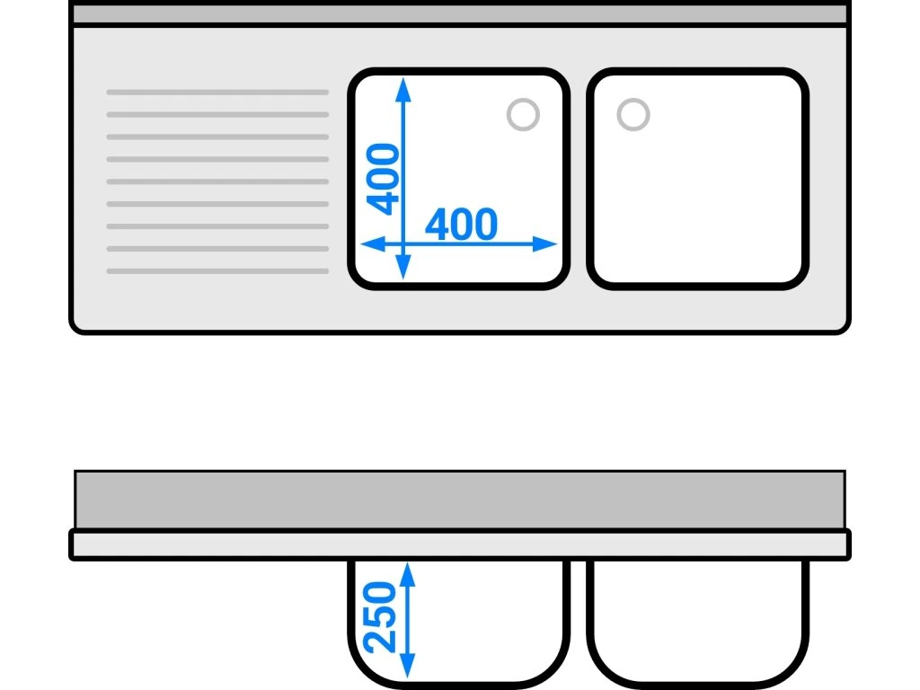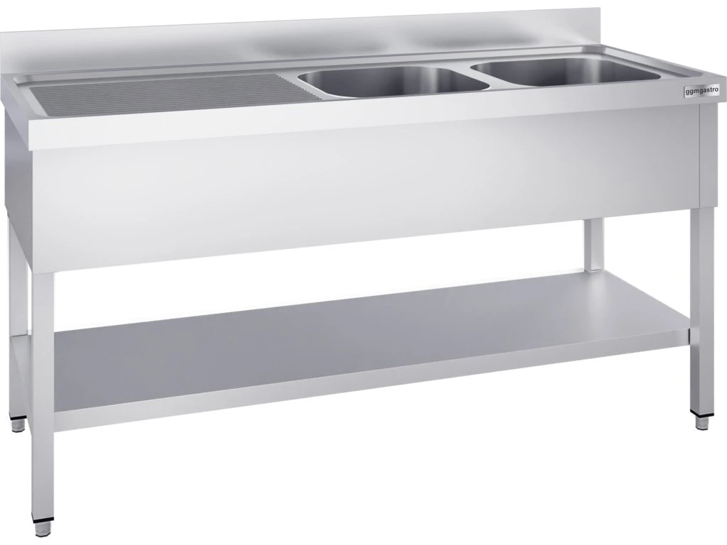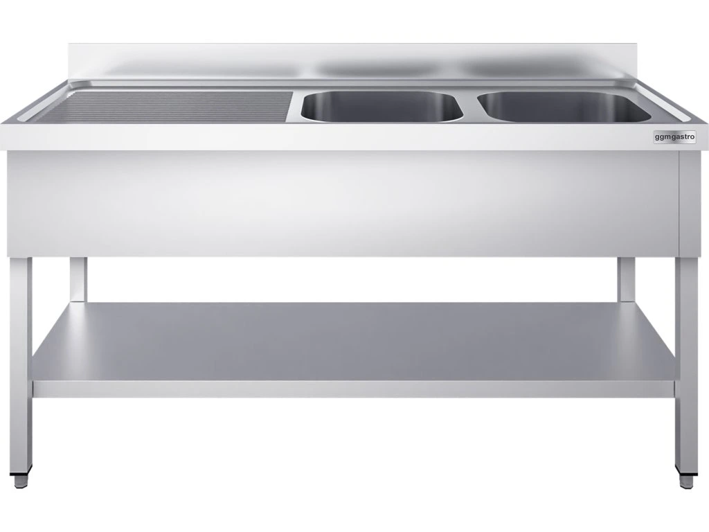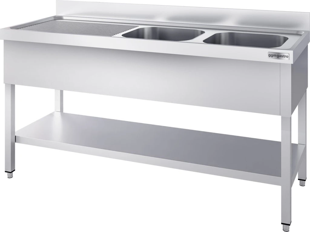 Stół zlewozmywakowy PREMIUM - 1400x600mm - - z półką dolną i 2 zlewami po prawej stronie