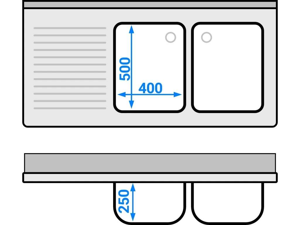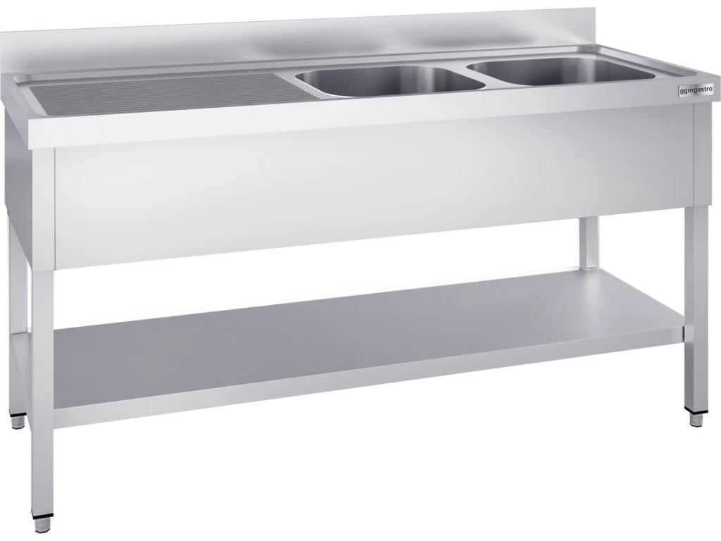 Stół zlewozmywakowy PREMIUM - 1400x700mm - z półką dolną i 2 zlewami po prawej stronie