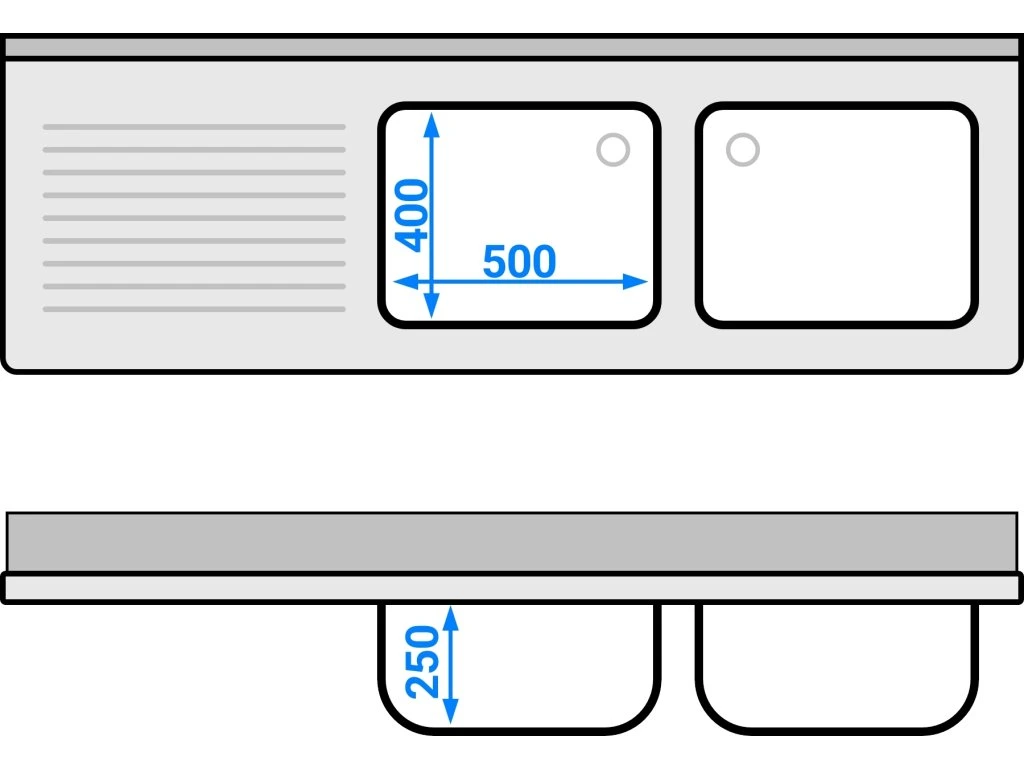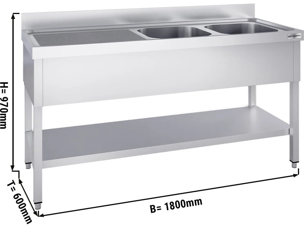 Stół zlewozmywakowy PREMIUM - 1800x600mm - z półką dolną i 2 zlewami po prawej stronie