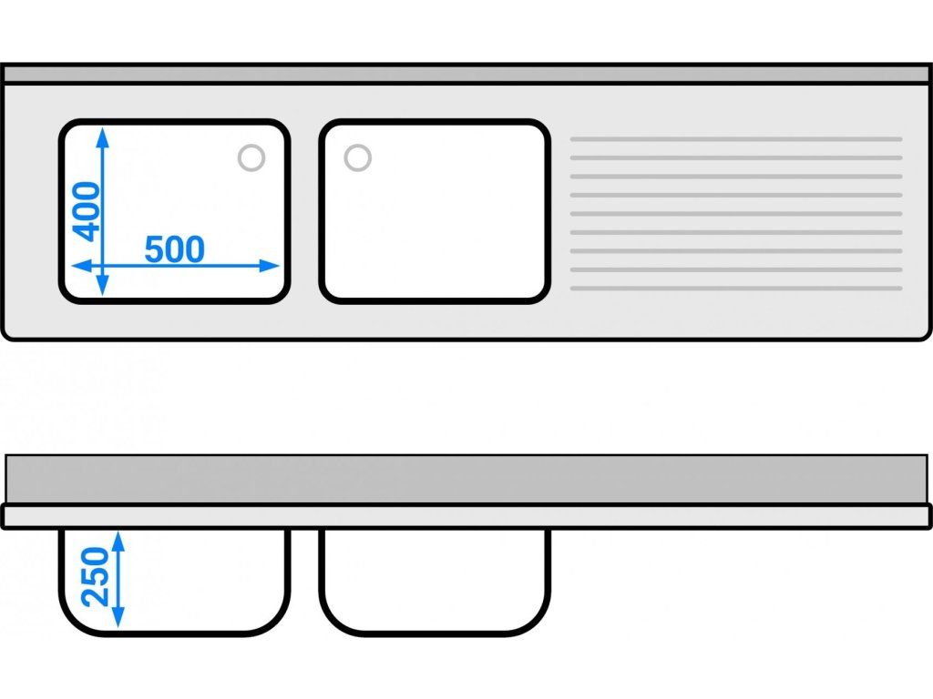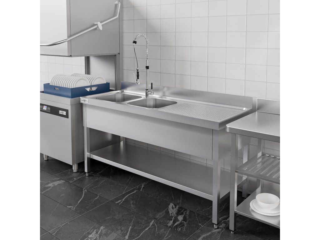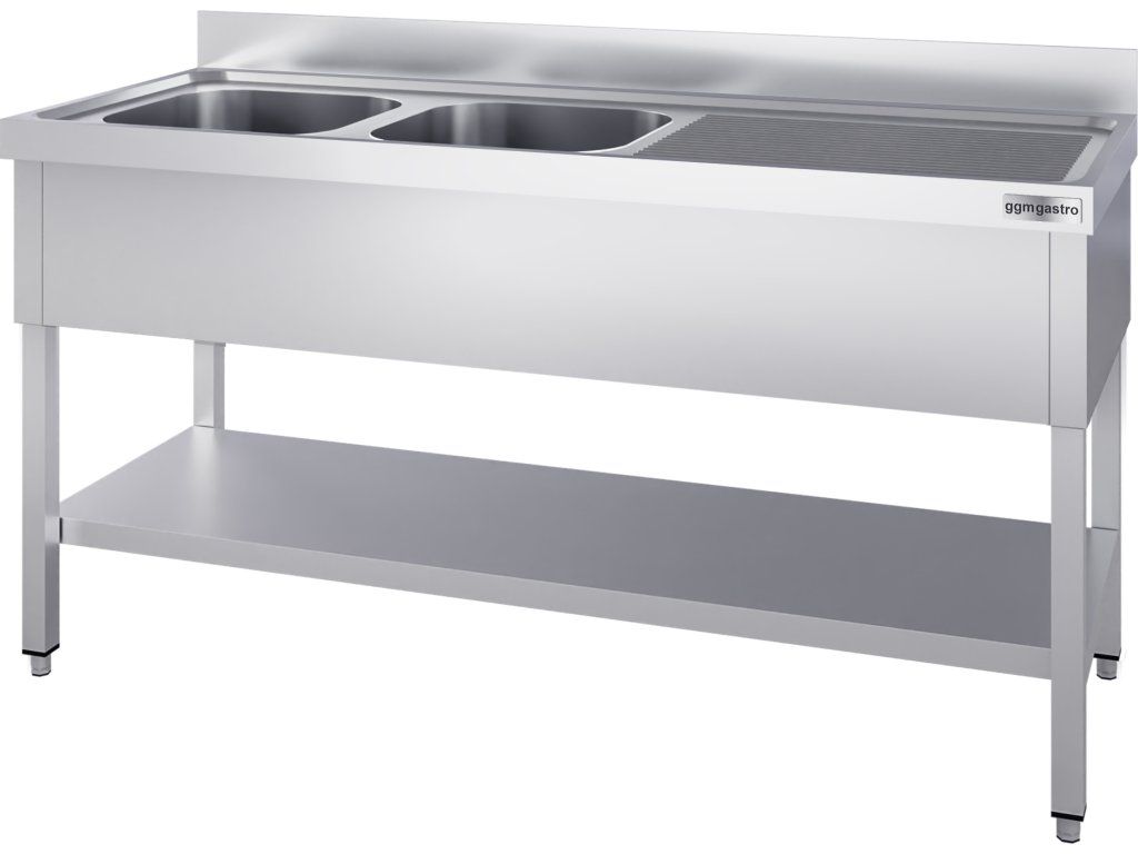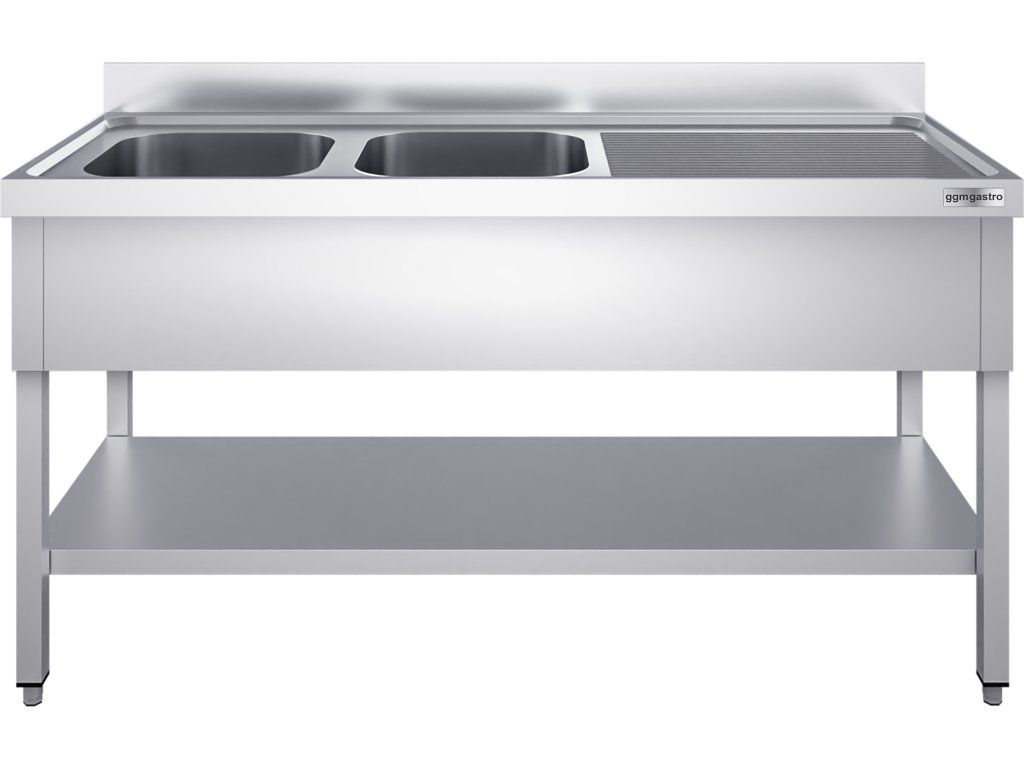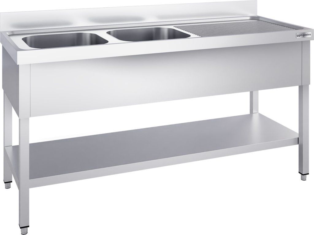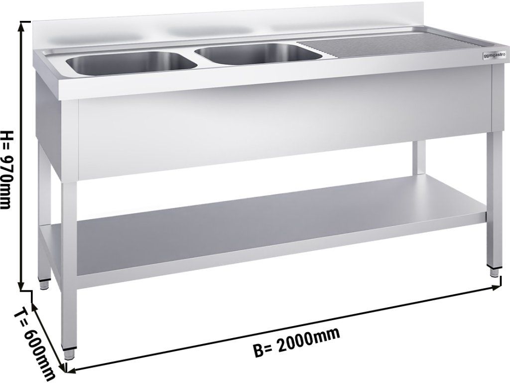 Stół zlewozmywakowy PREMIUM - 2000x600mm - z półką dolną i 2 zlewami po lewej stronie
