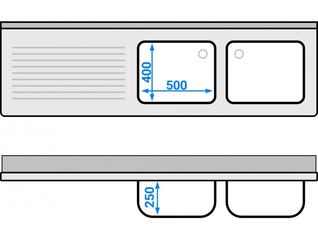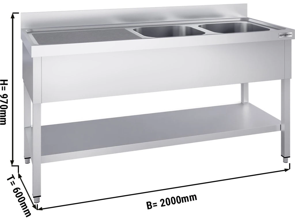Stół zlewozmywakowy PREMIUM - 2000x600mm - z półką dolną i 2 zlewami po prawej stronie
