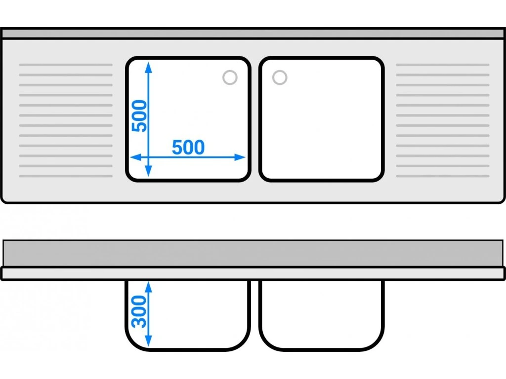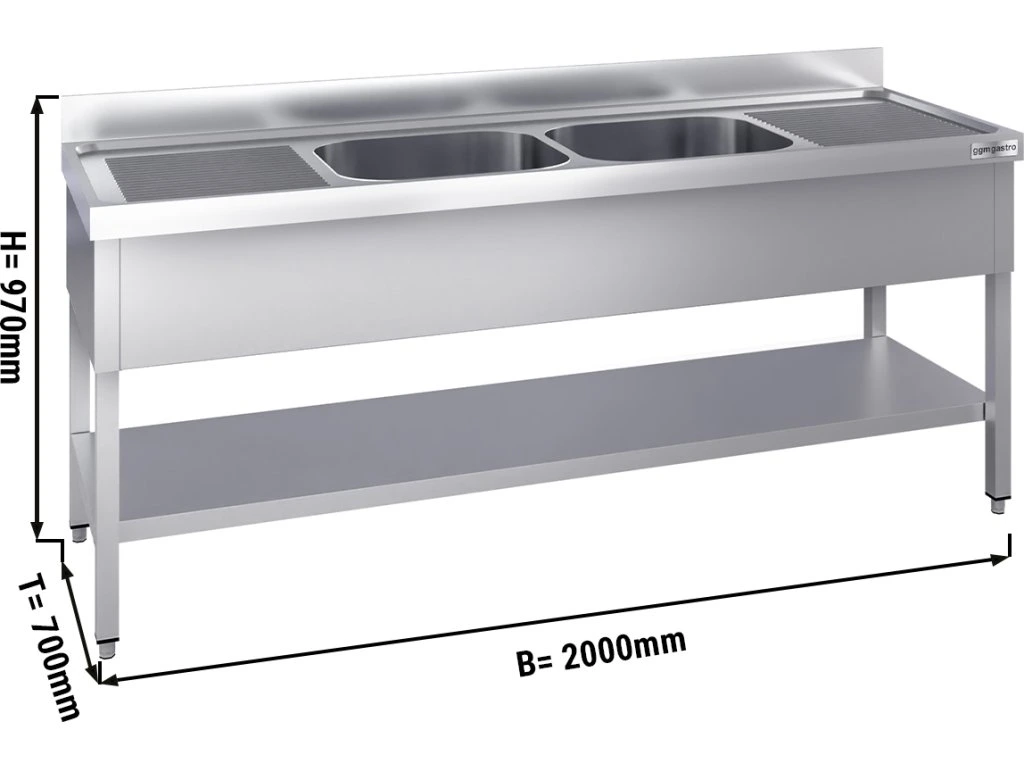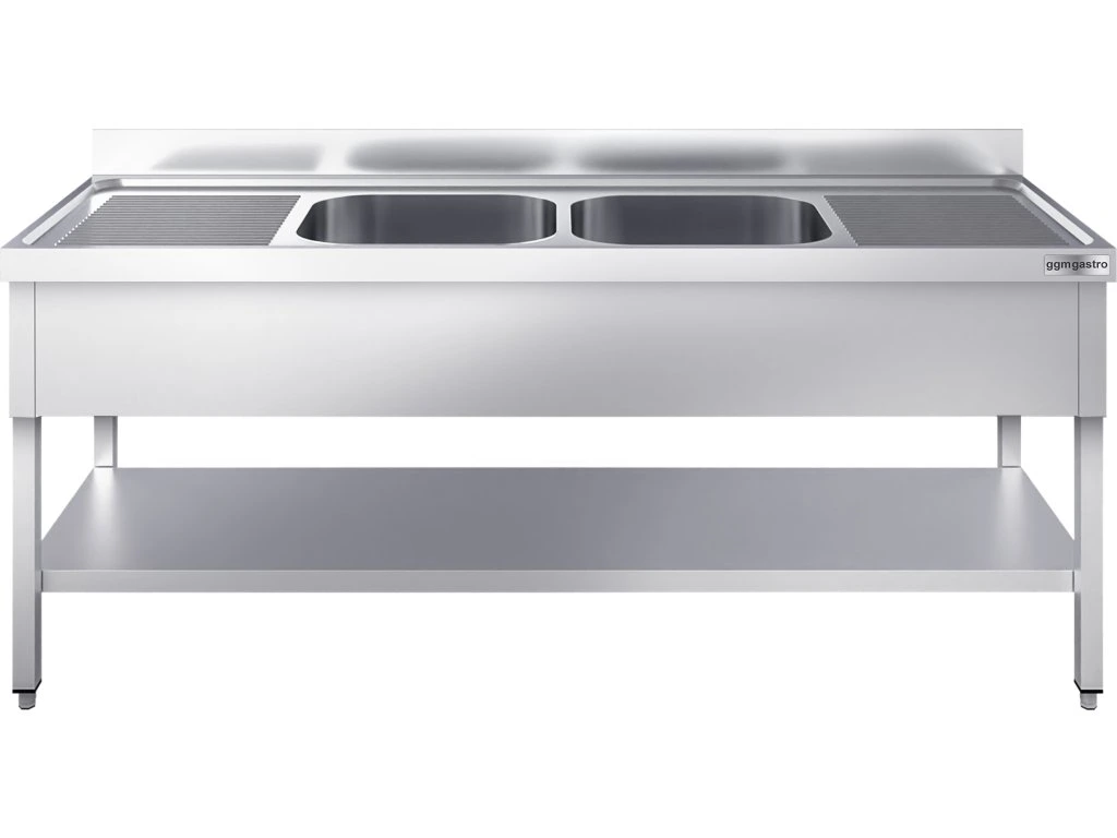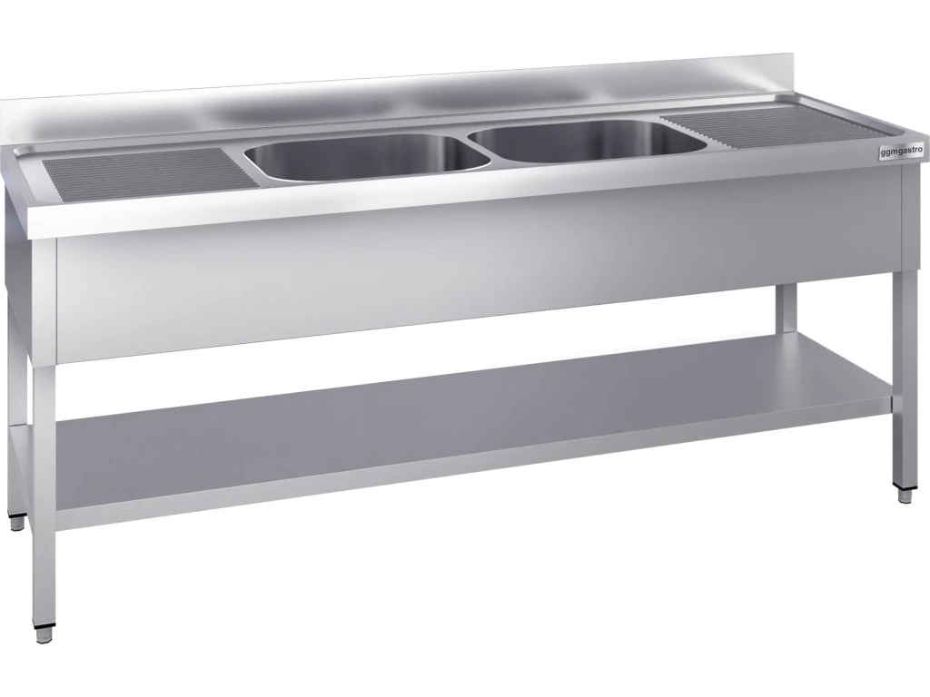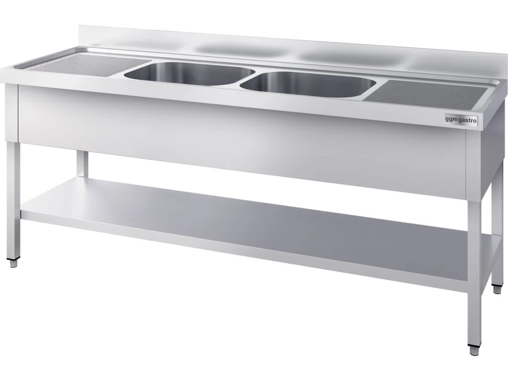 Stół zlewozmywakowy PREMIUM - 2000x700mm - z dolną półką i 2 zlewami w środku
