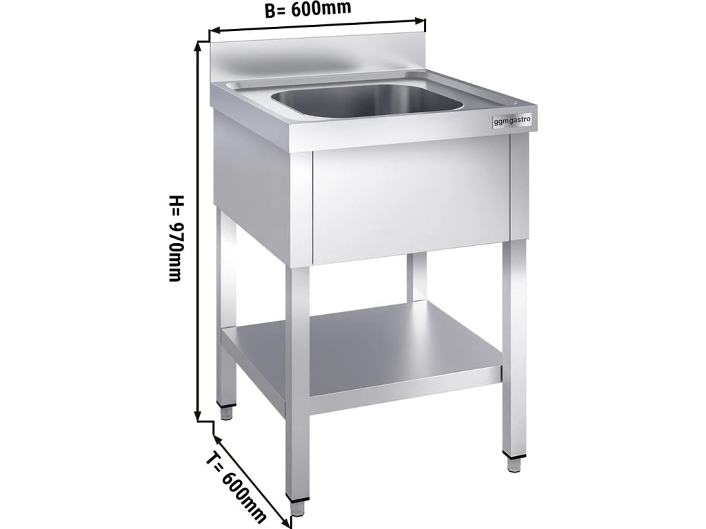 Stół zlewozmywakowy PREMIUM - 600x600mm - z dolną półką i 1 zlewem
