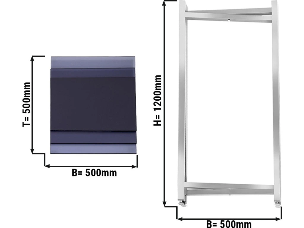 - Wymiary zewnętrzne szer. x gł. x wys: 500 mm x 500 mm x 1.200 mm