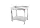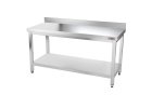 Stół roboczy ze stali nierdzewnej z dolną półką i tylną krawędzią - 0,6 x 0,6 m