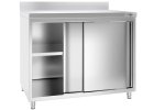 Szafka robocza PREMIUM ze stali nierdzewnej - 1000x700 mm - z przesuwanymi drzwiami & panelem tylnym