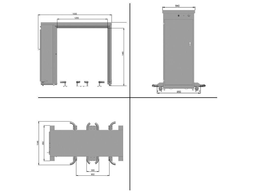- Wymiary wewnętrzne (Szer.xGłęb.xWys): 1.250 mm x 640 mm x 1.440 mm