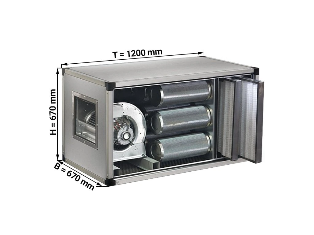 System oczyszczania powietrza wylotowego 2700 m³ - z filtrem wstępnym i filtrem z węglem aktywnym - włącznie z panelem ochronnym