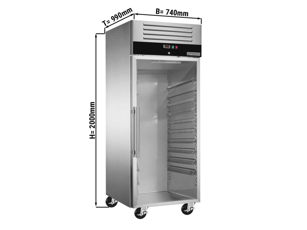 Chłodziarka piekarnicza ze stali nierdzewnej PREMIUM - EN 60x80 - 800 litrów - z 1 szklanymi drzwiami