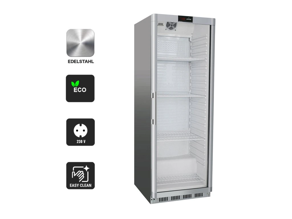 Chłodziarka ze stali nierdzewnej PREMIUM - 400 litrów - z 1 szklanymi drzwiami