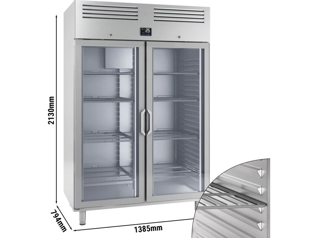 Chłodziarka ze stali nierdzewnej PREMIUM PLUS - GN 2/1 - 1240 litrów - z 2 szklanymi drzwiami
