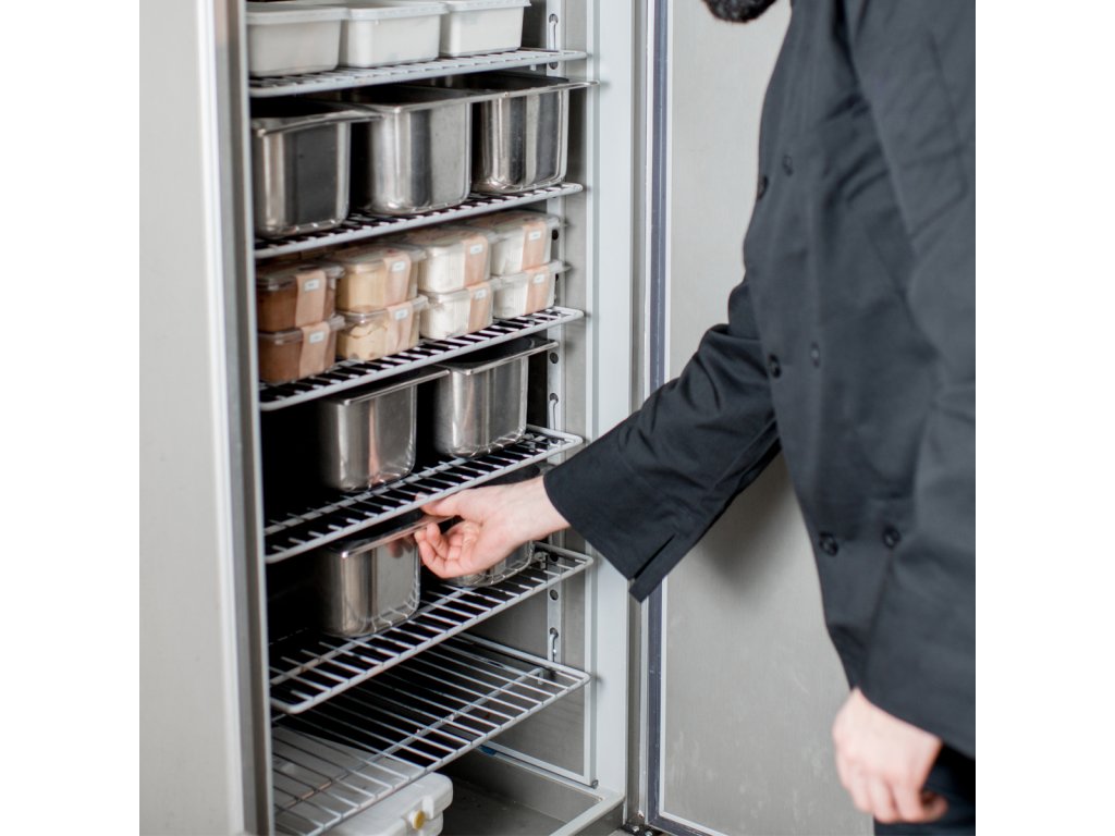 - Urządzenie rozpoznaje włożenie nowego towaru i w pełni automatycznie reguluje chłodzenie (kontrola HACCP)