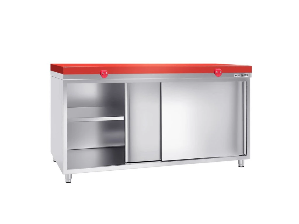 Szafa robocza PREMIUM ze stali nierdzewnej - 2000x800mm - z drzwiami przesuwnymi bez panelu tylnego, włącznie z płytą do cięcia