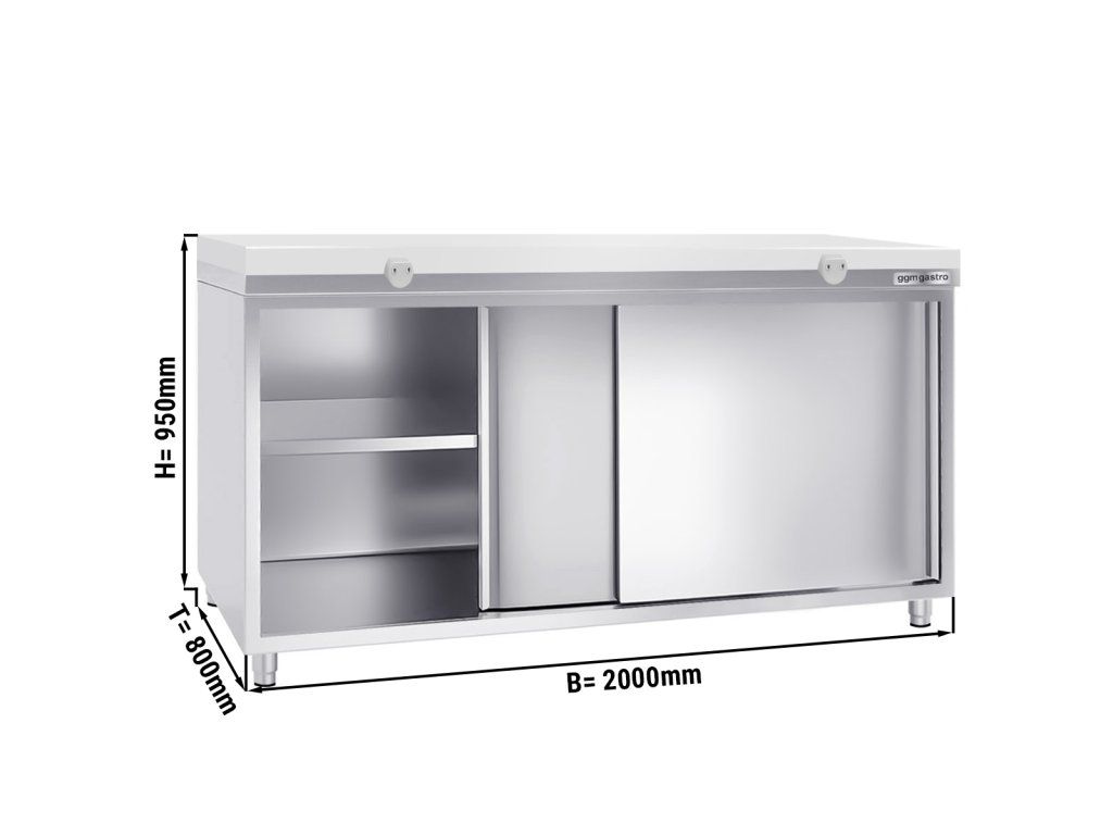 Szafa robocza PREMIUM ze stali nierdzewnej - 2000x800mm - z drzwiami przesuwnymi bez panelu tylnego, włącznie z płytą do cięcia