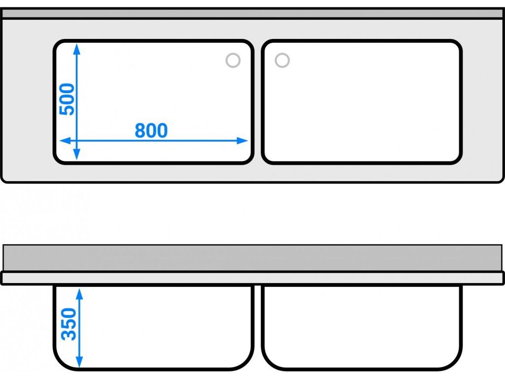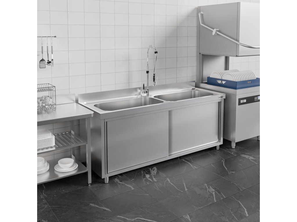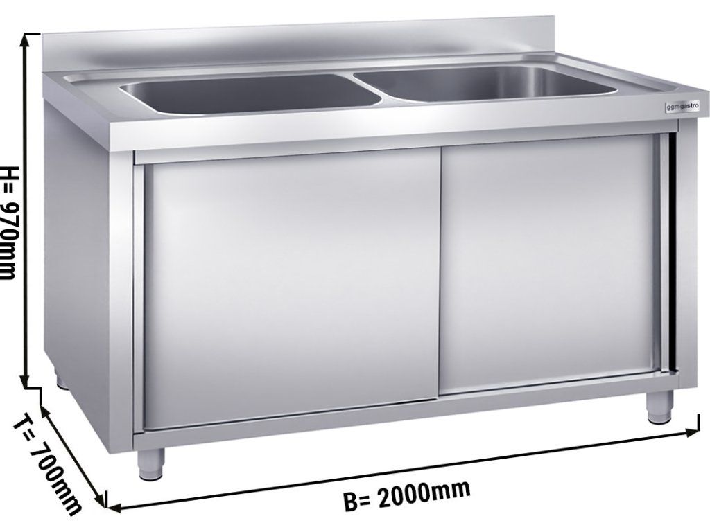 Szafka ze zlewem do mycia garnków - 2000x700mm - z 2 zlewami