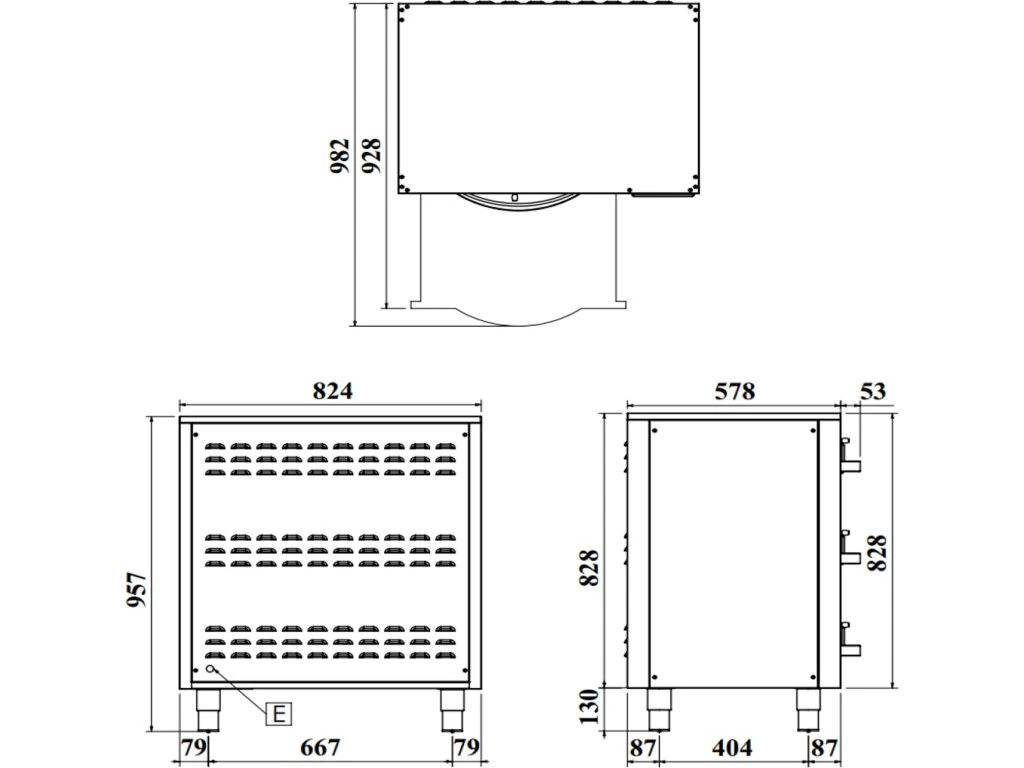 - Wymiary zewnętrzne szer. x gł. x wys.: 824 mm x 578 mm (bez uchwytu) / 631 mm (z uchwytem) x 957 mm