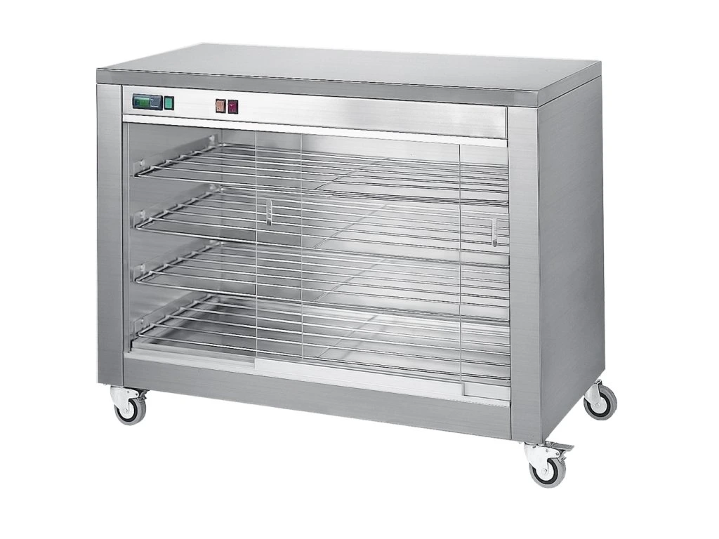 Szafka grzewcza z przesuwanymi szklanymi drzwiami i 4 półkami - 940x690x880 mm