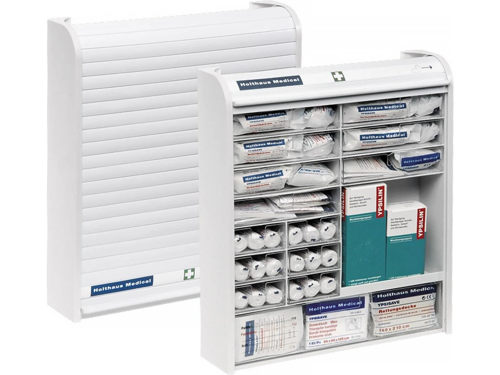 - Szafka pierwszej pomocy Rollmed® z roletą i blokadą zabezpieczającą przed dziećmi