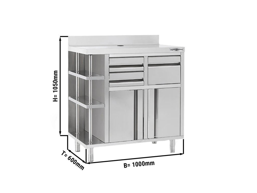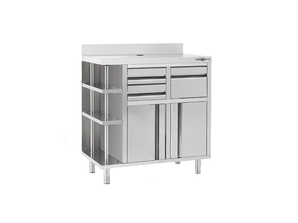 Szafka robocza - na ekspres do kawy - 1000x600 mm - z kołatką, 2 szufladami, 2 drzwiczkami & panelem tylnym
