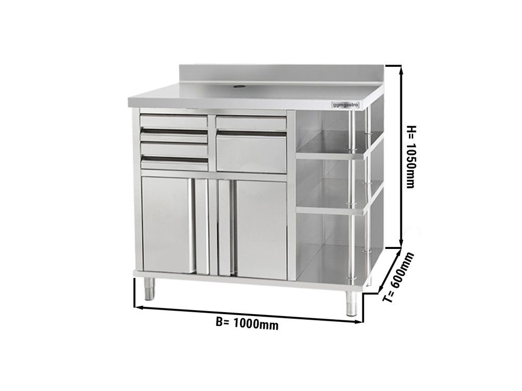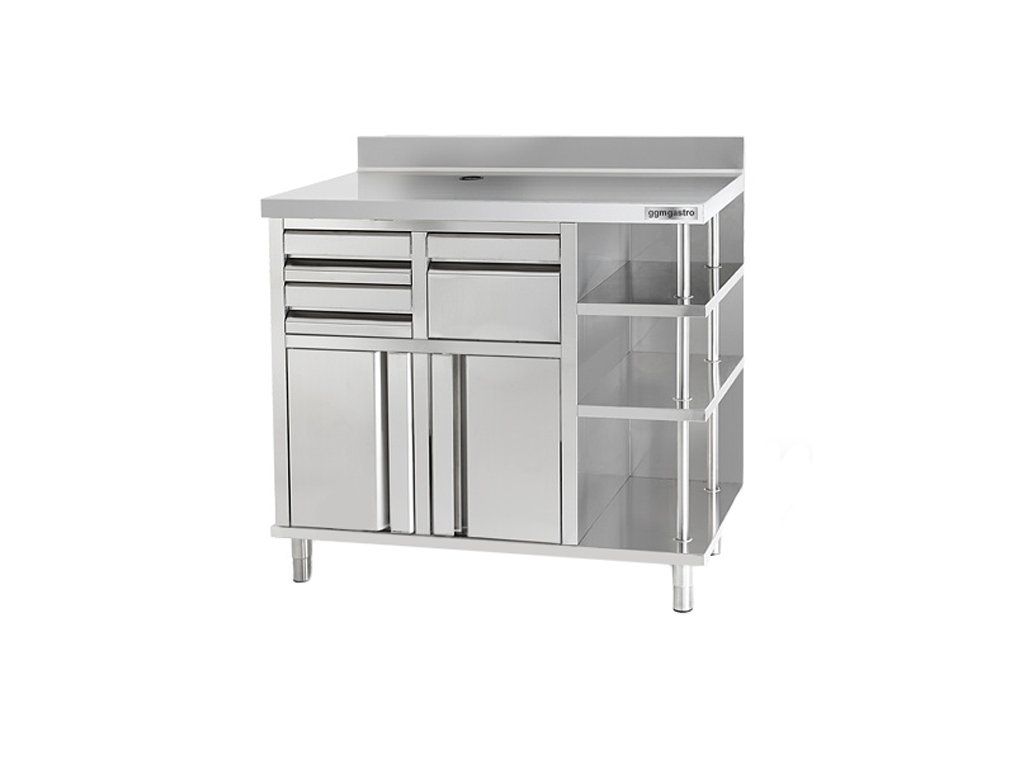 Szafka robocza - na ekspres do kawy - 1000x600 mm - z kołatką, 2 szufladami, 2 drzwiczkami & panelem tylnym