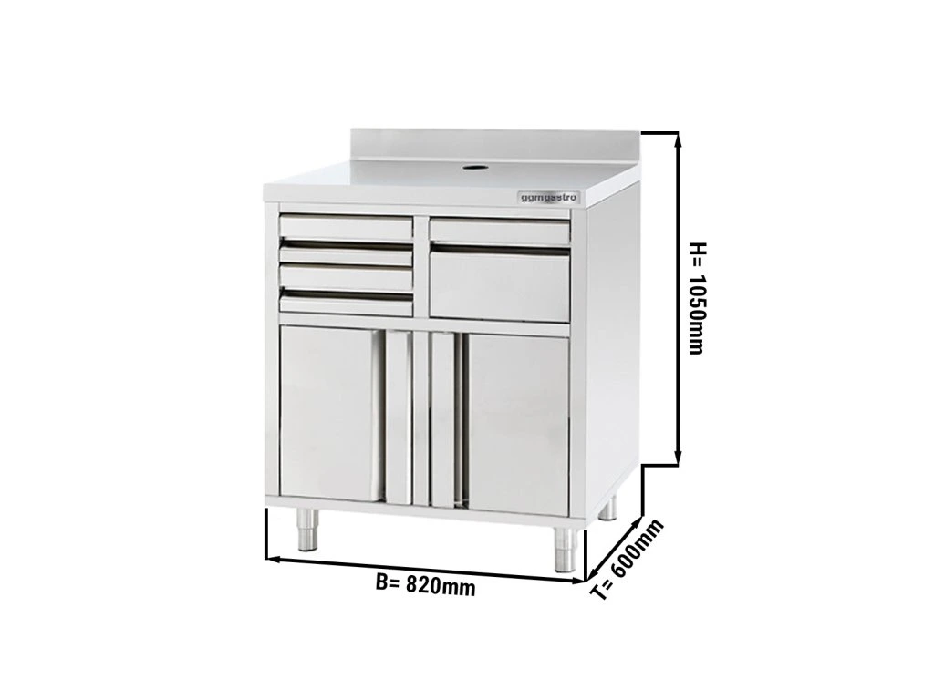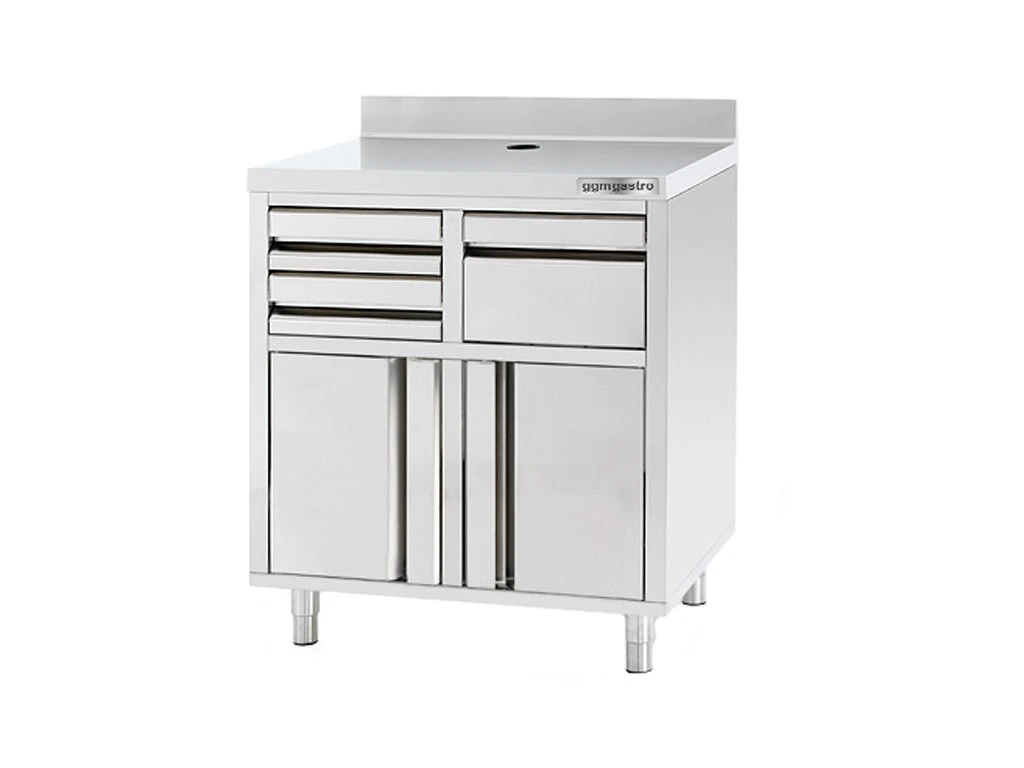 Szafka robocza - na ekspres do kawy - 800x600mm - z kołatką, 2 szufladami, 2 drzwiczkami & panelem tylnym