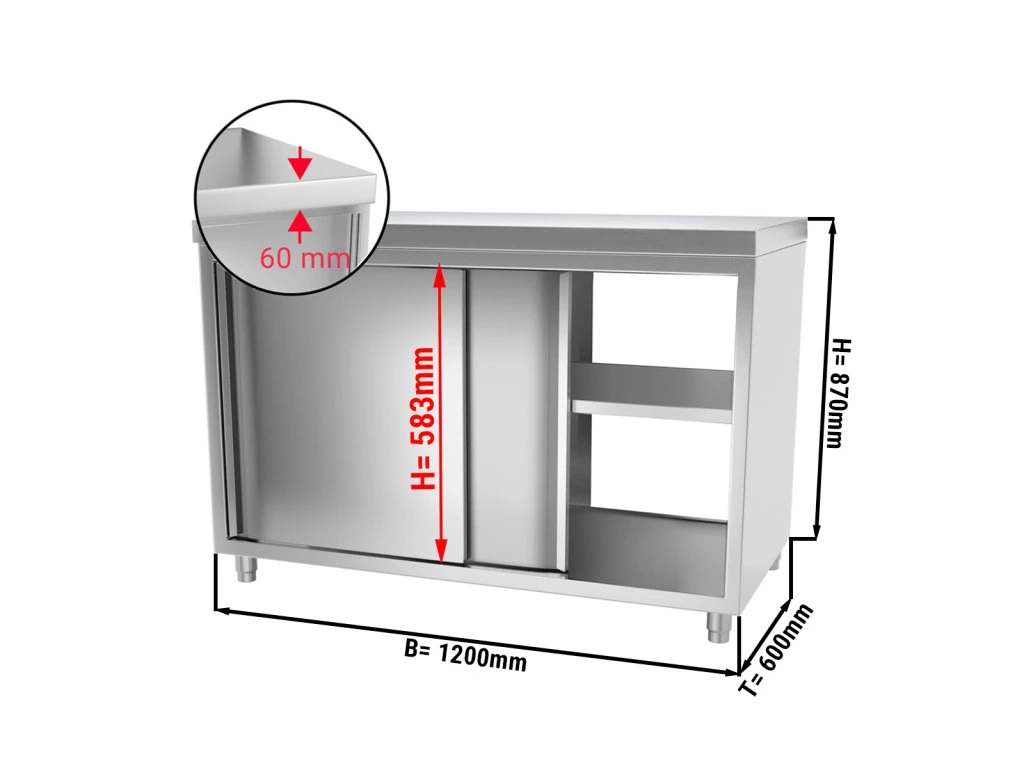 Szafka robocza ze stali nierdzewnej PREMIUM - z drzwiami po obu stronach - 1,2 m