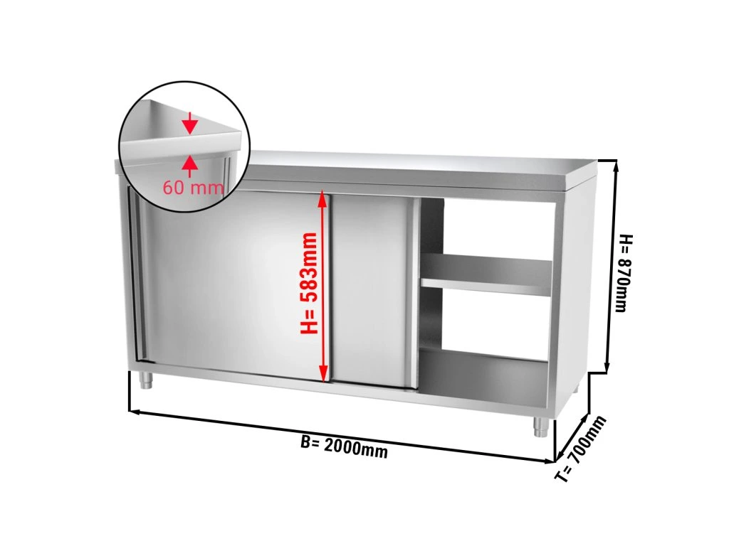 Szafka robocza ze stali nierdzewnej PREMIUM - z drzwiami po obu stronach - 2,0 m