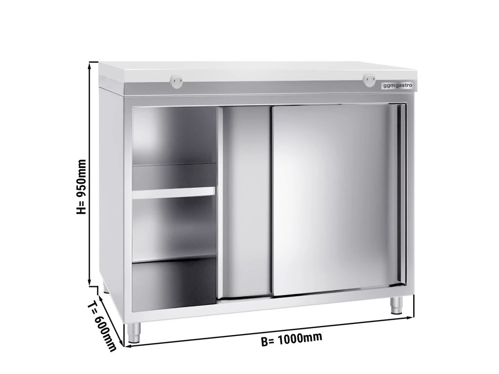 Szafka robocza PREMIUM ze stali nierdzewnej - 1000x600 mm - z drzwiami przesuwnymi bez panelu tylnego, włącznie z płytą do cięcia