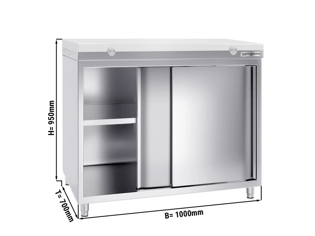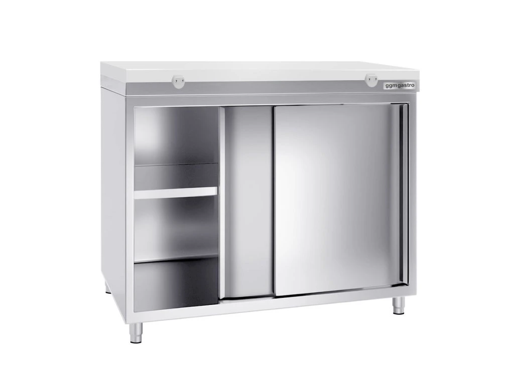 Szafka robocza PREMIUM ze stali nierdzewnej - 1000x700 mm - z drzwiami przesuwnymi bez panelu tylnego , włącznie z płytą do cięcia