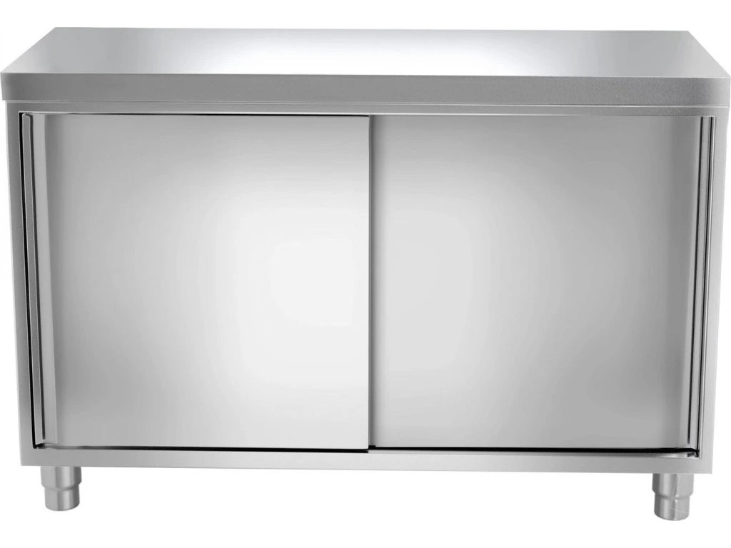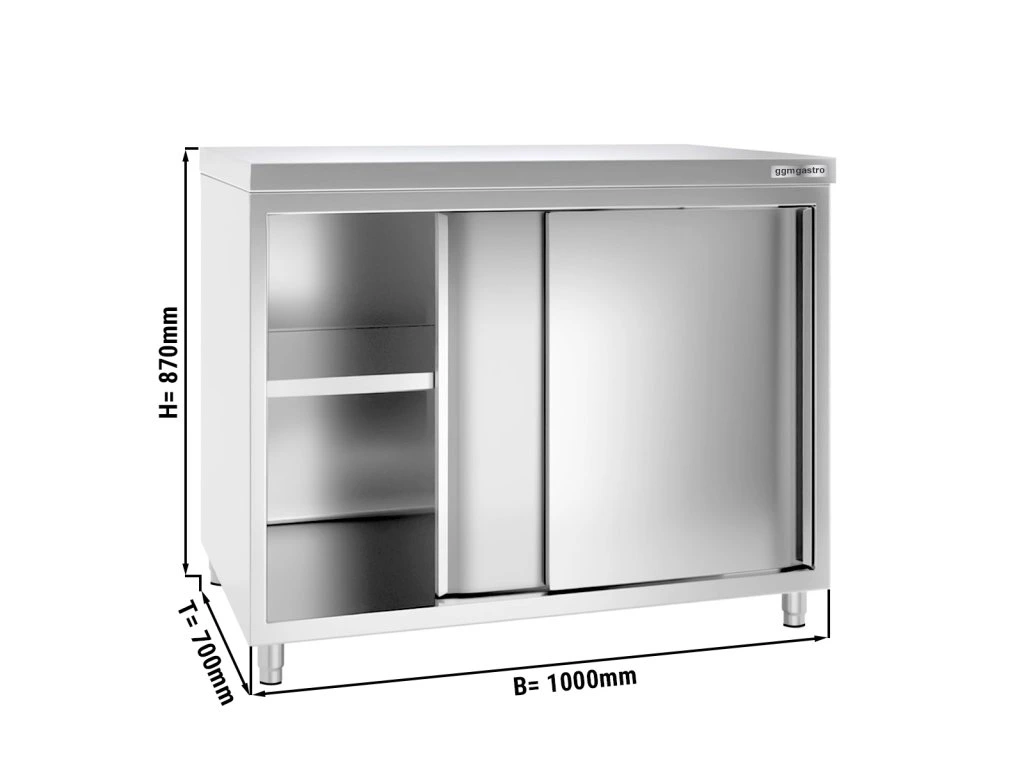 Szafka robocza PREMIUM ze stali nierdzewnej - 1000x700 mm - z drzwiami przesuwnymi bez panelu tylnego