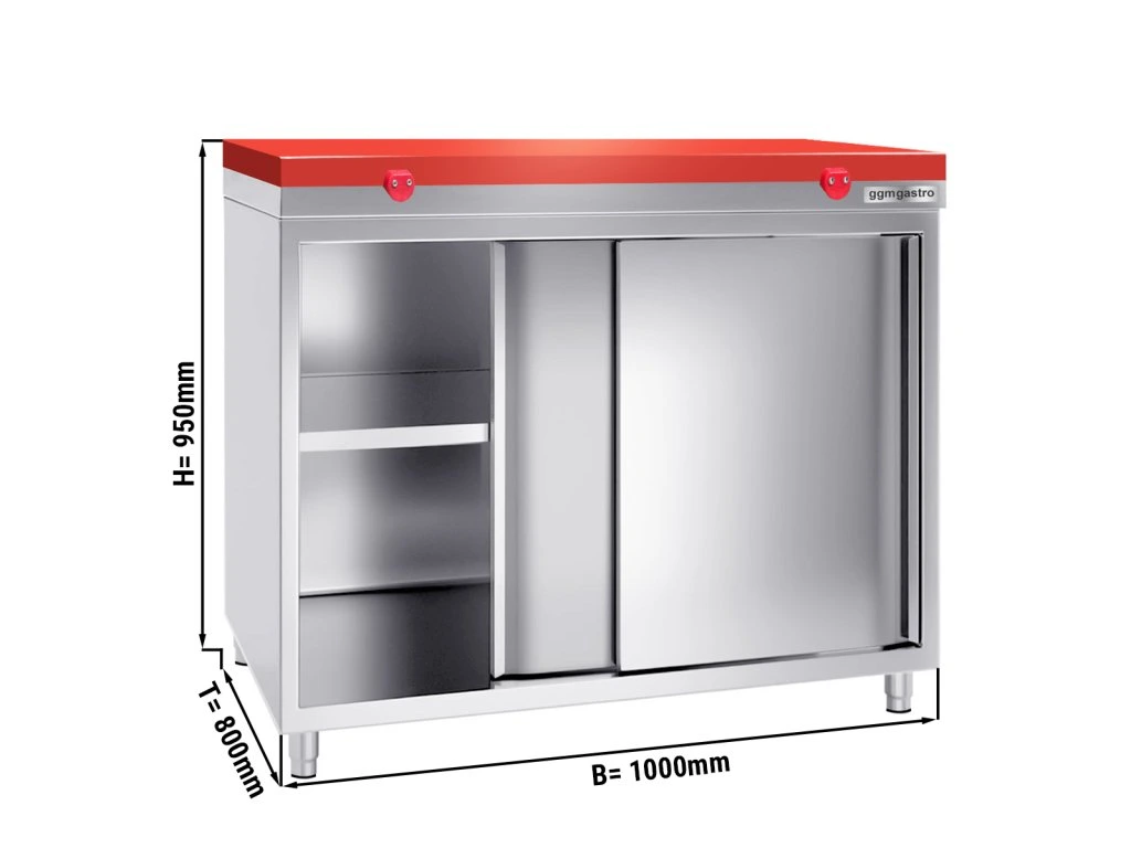 Szafka robocza ze stali nierdzewnej PREMIUM - 1000x800 mm - z drzwiami przesuwnymi bez panelu tylnego włącznie z płytą do cięcia