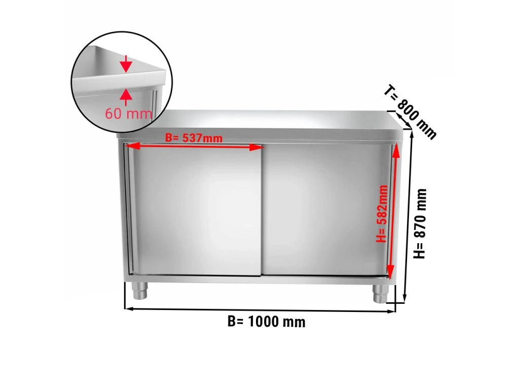 Szafka robocza PREMIUM ze stali nierdzewnej - 1000x800 mm - z drzwiami przesuwnymi bez panelu tylnego