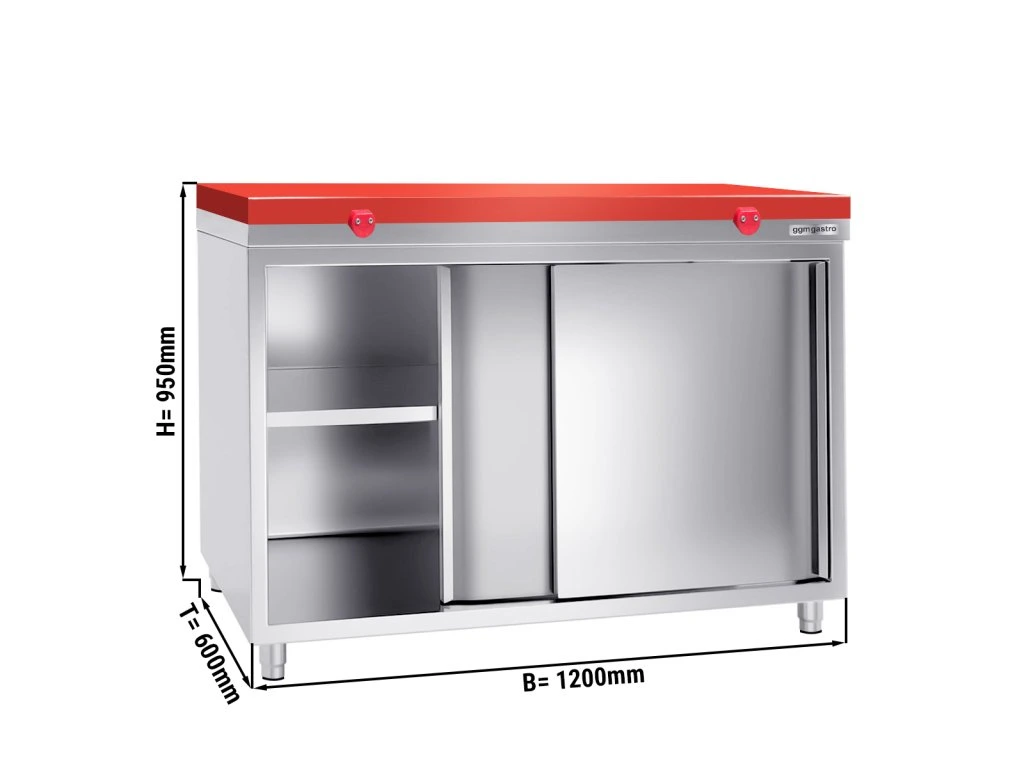 Szafka robocza PREMIUM ze stali nierdzewnej - 1200x600 mm - z drzwiami przesuwnymi bez panelu tylnego, włącznie z Płytą do cięcia