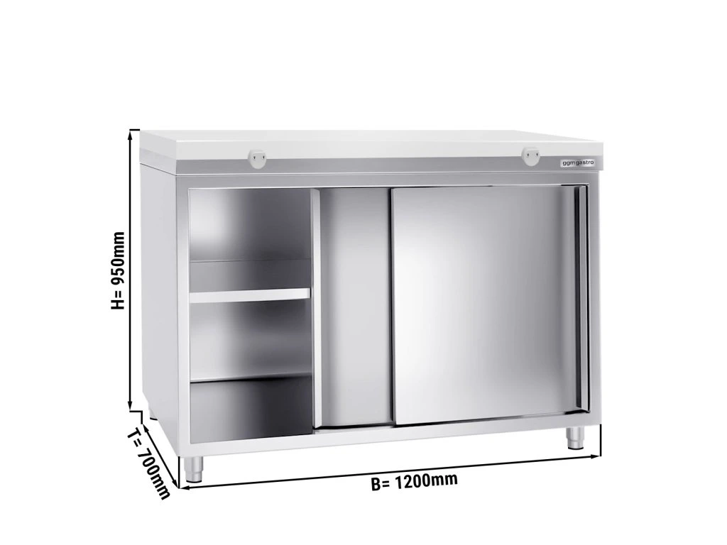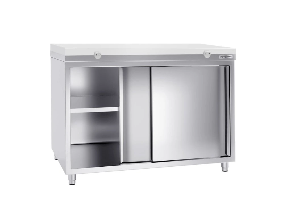 Szafka robocza PREMIUM ze stali nierdzewnej - 1200x700 mm - z drzwiami przesuwnymi bez panelu tylnego , włącznie z płytą do cięcia