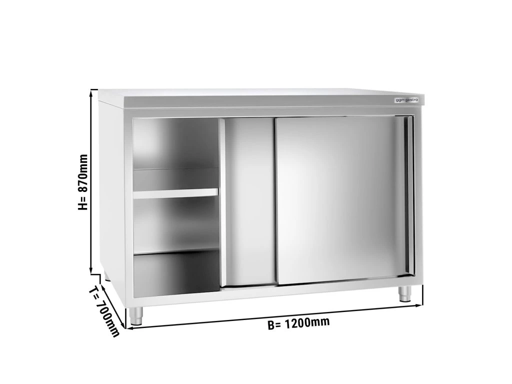 Szafka robocza PREMIUM ze stali nierdzewnej - 1200x700 mm - z drzwiami przesuwnymi bez panelu tylnego
