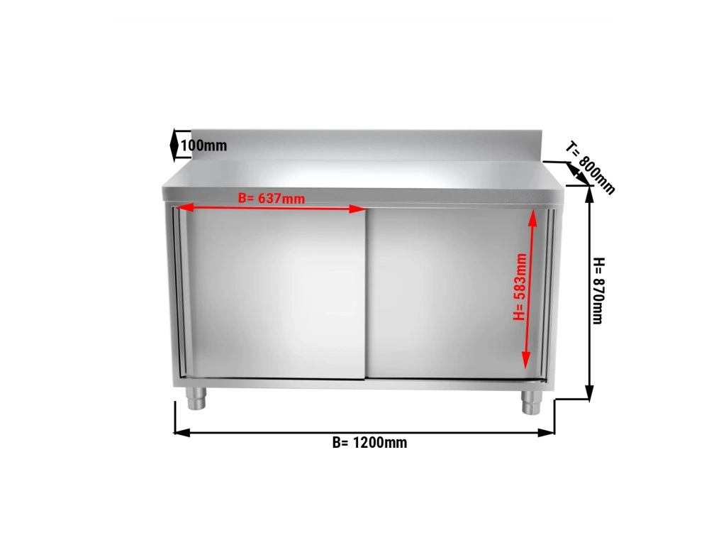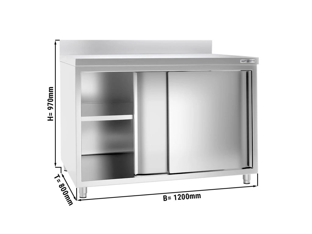Szafka robocza PREMIUM ze stali nierdzewnej - 1200x800 mm - z przesuwanymi drzwiami & panelem tylnym