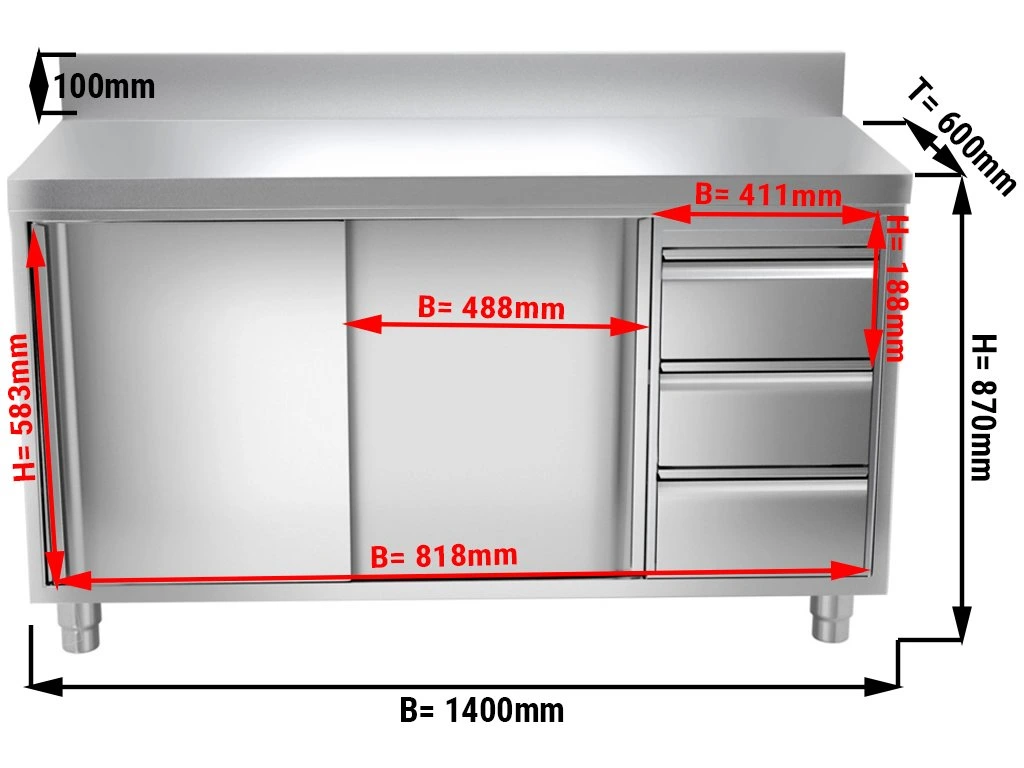 - Obudowa, szuflady i drzwi wykonane z wysokiej jakości AISI 304
