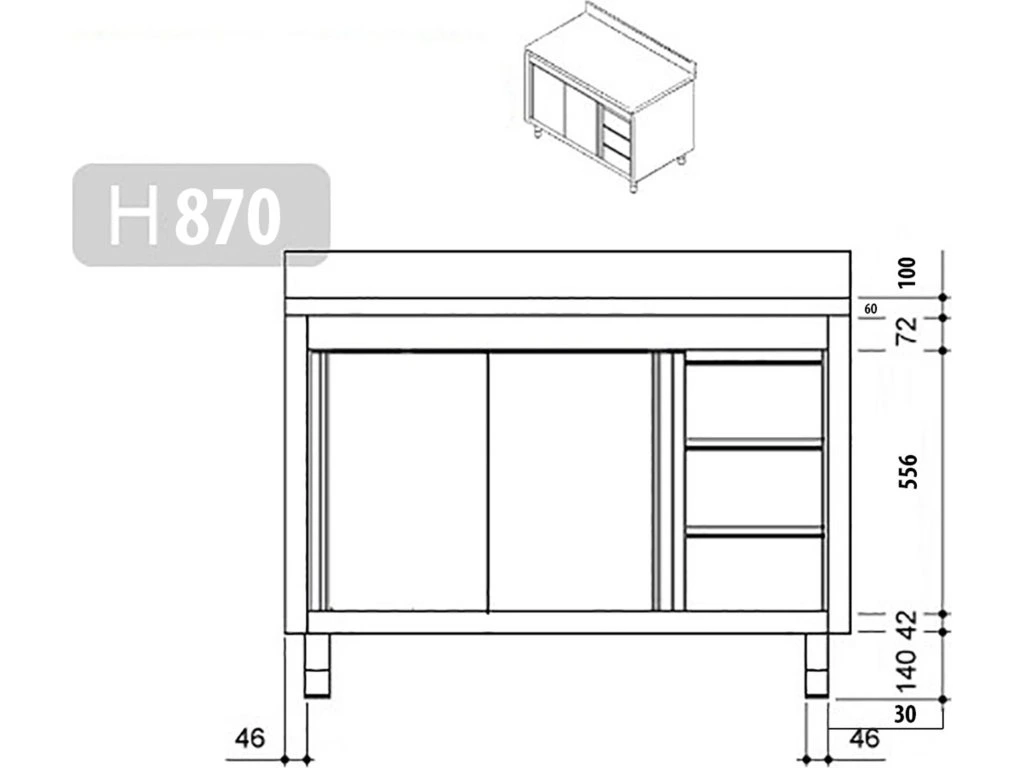 - Płyta robocza z dwoma ściankami ze stali nierdzewnej