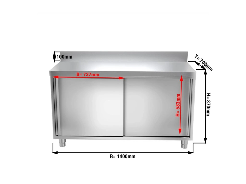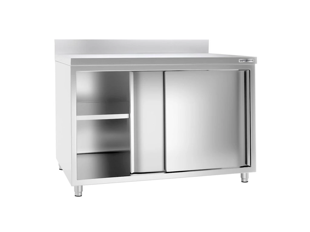 Szafka robocza PREMIUM ze stali nierdzewnej - 1400x700 mm - z przesuwanymi drzwiami & panelem tylnym